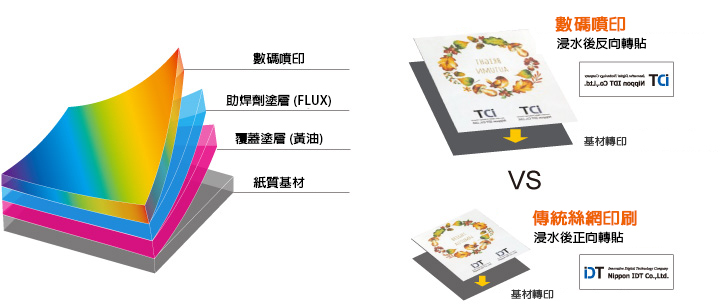 -直接打印在已有事先印好黃油塗層和FLUX塗層的轉印紙。